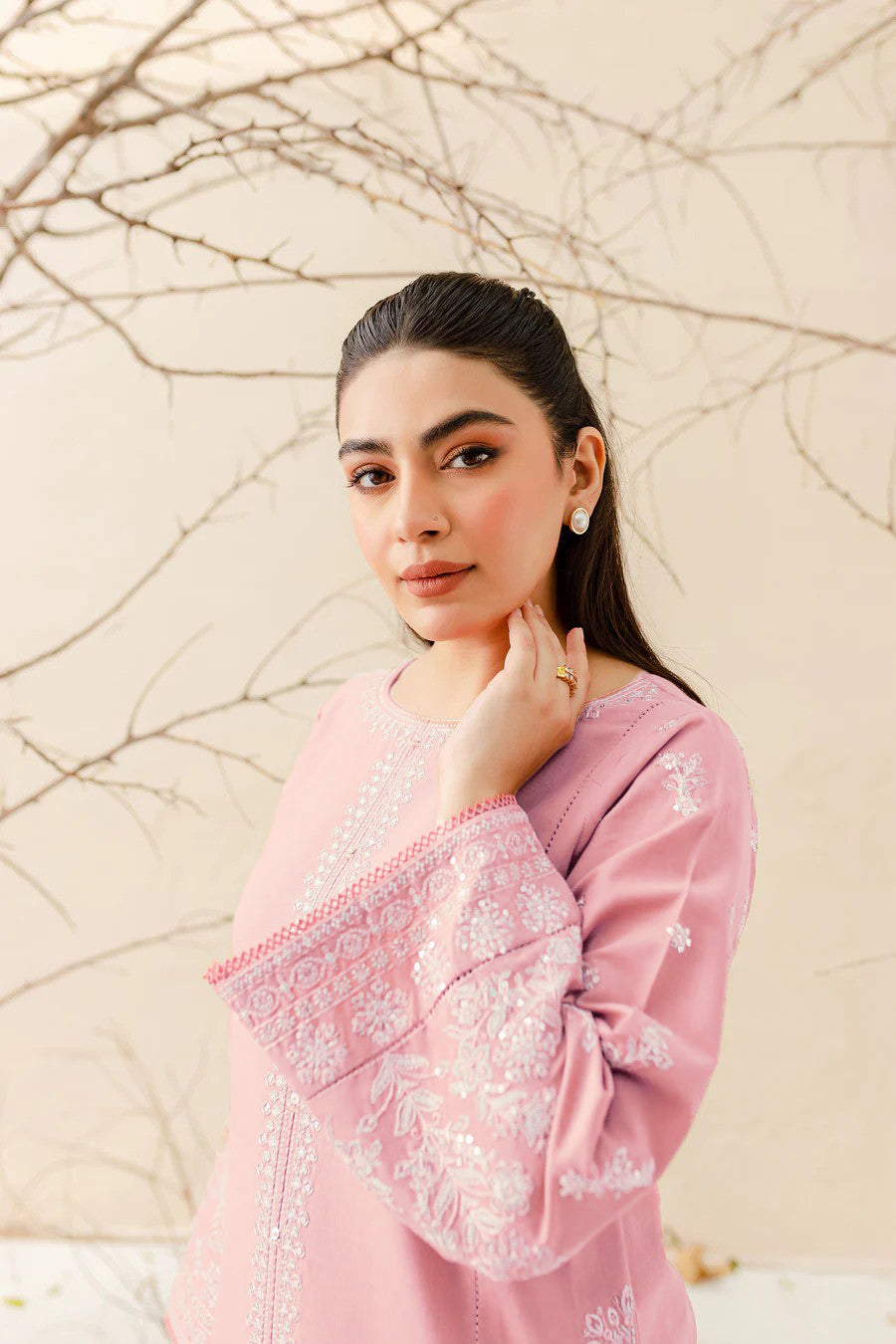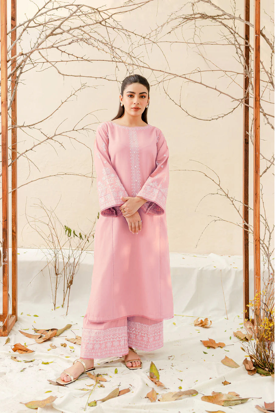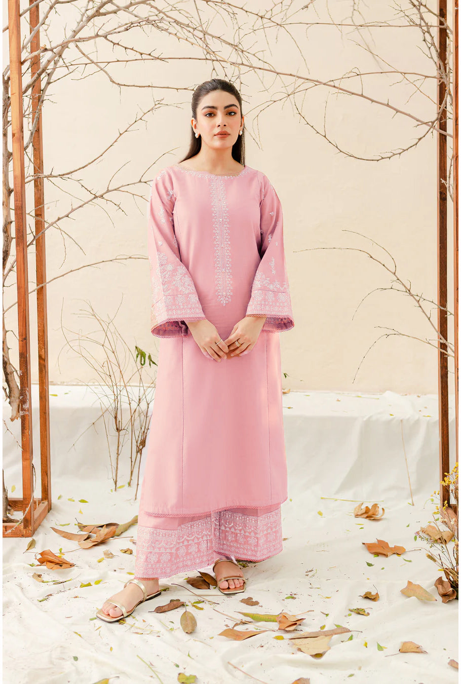 This winter season, make your wardrobe stand out with our finest quality Cotton in the shades of Pink. Skillfully designed paneled shirt features embroidery at front finished with crochet lace and collage details at neckline. Sleeves are loose fitted featuring composed embroidery with crochet lace finishing.